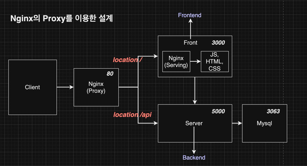 요청 경로에 따라 fe, be 구분하여 해당하는 서버를 통해 처리하고, 응답을 주기위한 proxy 용도