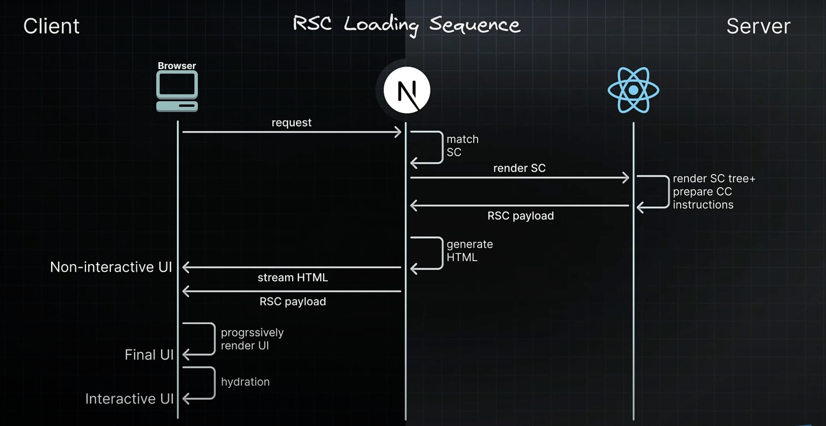 RSC는 전달받은 HTML만 렌더링하므로 하이드레이션이 필요하지 않음